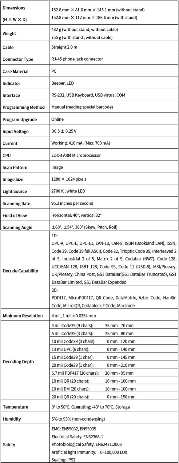 - High-performance imaging technology provides support to read 1D and 2D barcodes from both paper labels and mobile devices.