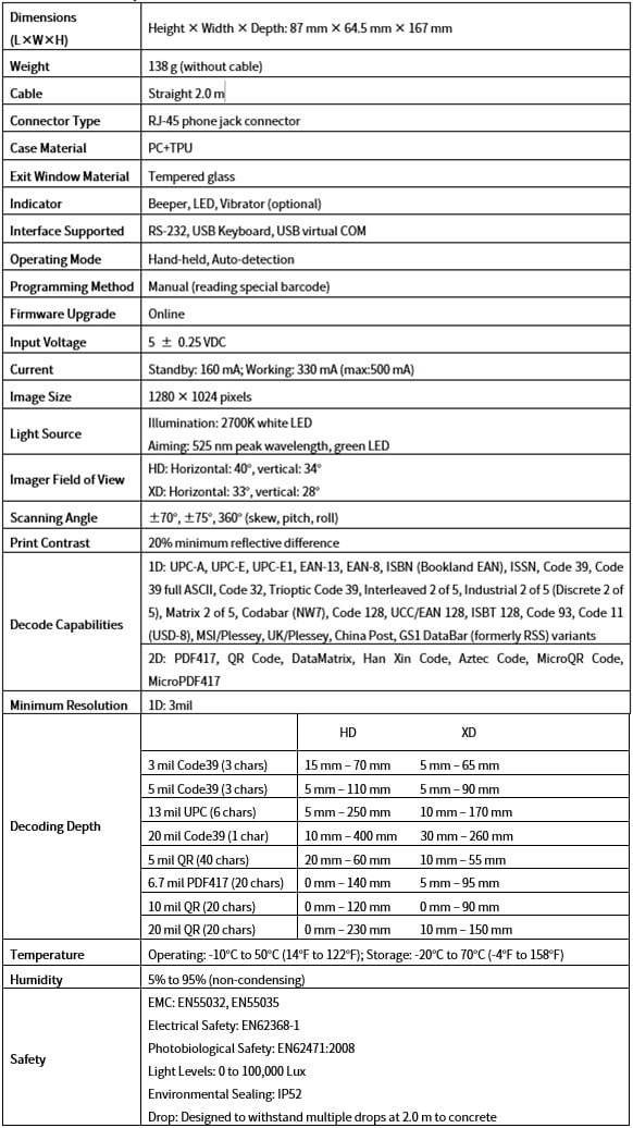 - Excellent capability of scanning extremely density barcodes